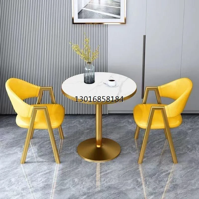 金仿白理石+イエローレザー椅子