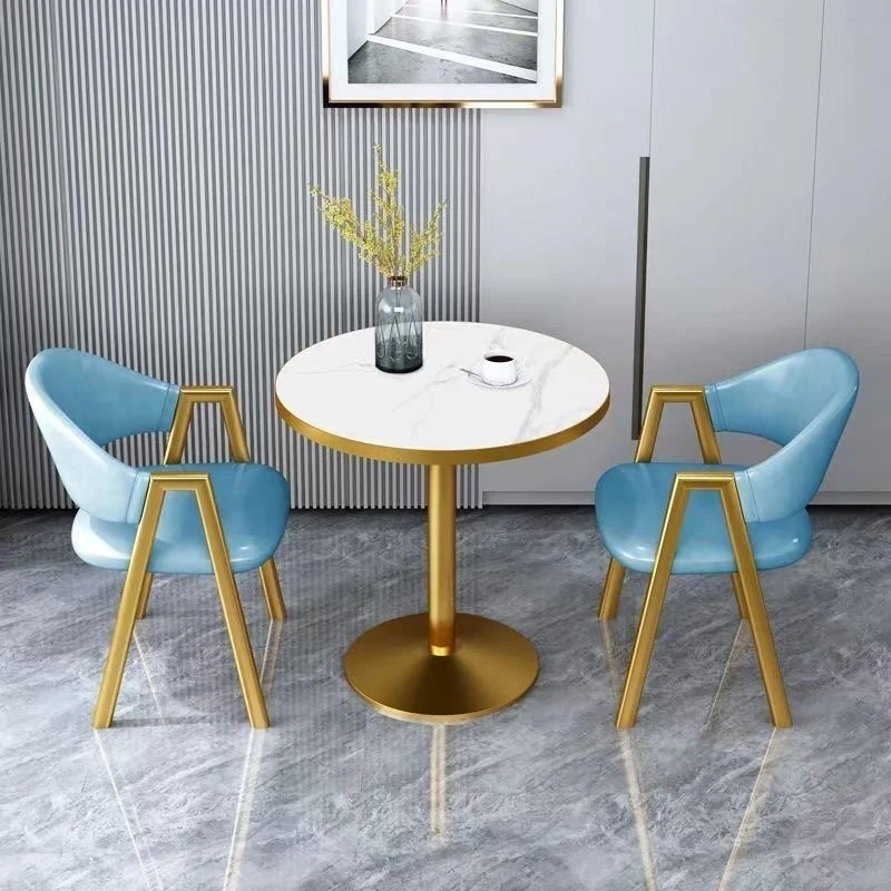 金仿白理石+ライトブルーレザー椅子