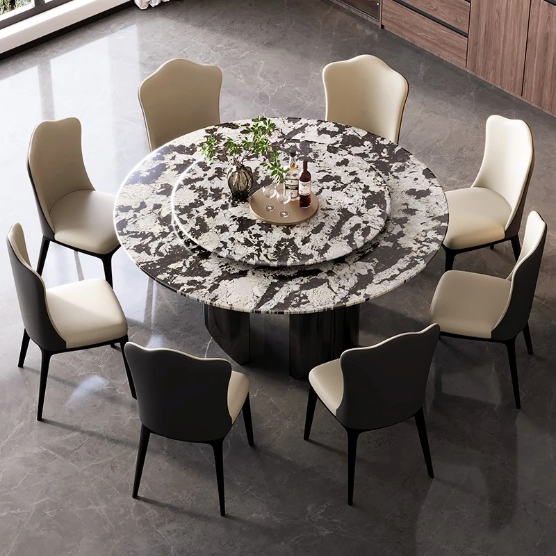 雪山飛狐の贅沢石製ダイニングテーブル+回転盤+8脚のダイニングチェア(本物の贅沢石、偽物は十倍の罰)