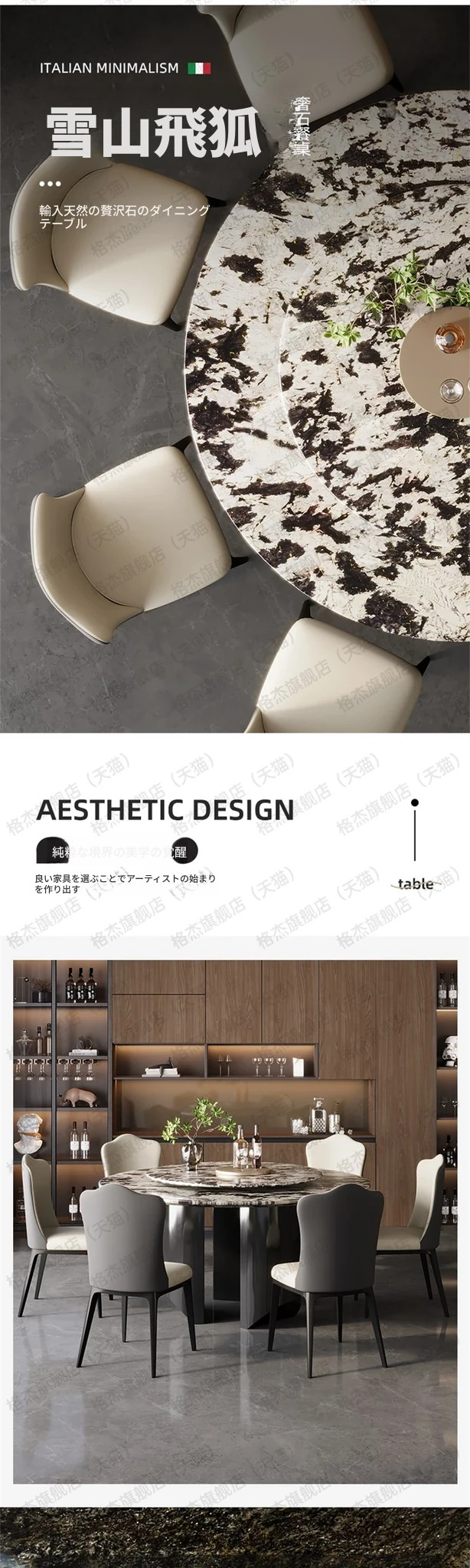 雪山飛狐 天然大理石 ラウンドダイニングテーブル 高級感あふれる円形デザイン 小型住宅に最適 新作リビング用 食卓テーブル