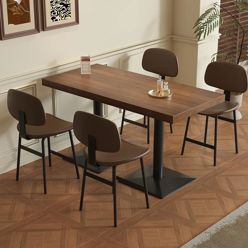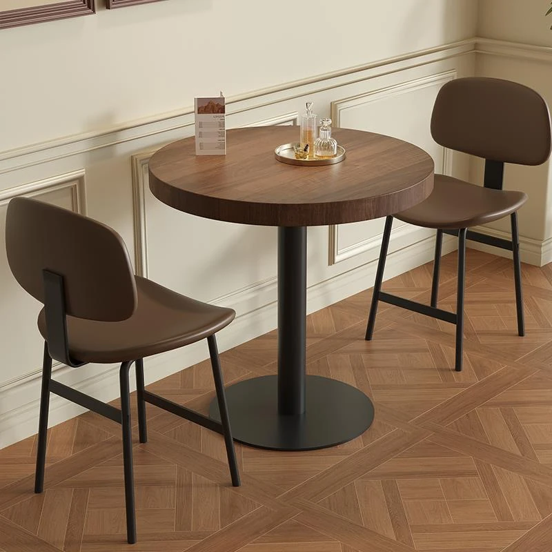 高品質の無垢材製カフェテーブル&チェアセット|正方形&円形デザイン|2人用・小型4角テーブル|ハンバーガー・デザート店に最適!おしゃれで機能的、居心地の良い空間を演出します。
