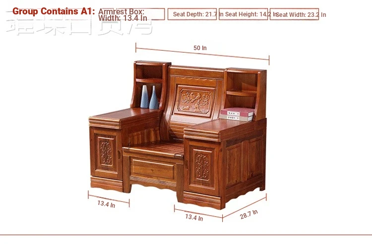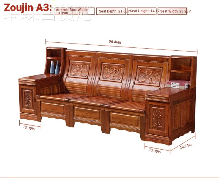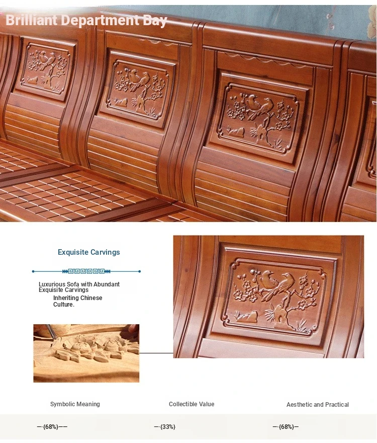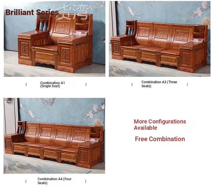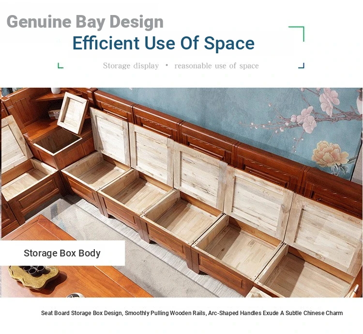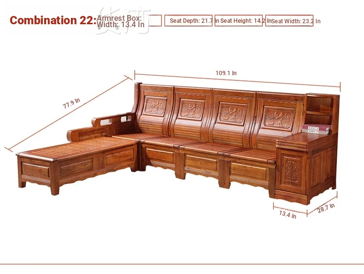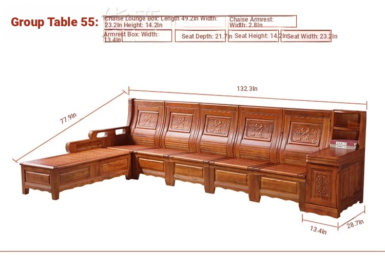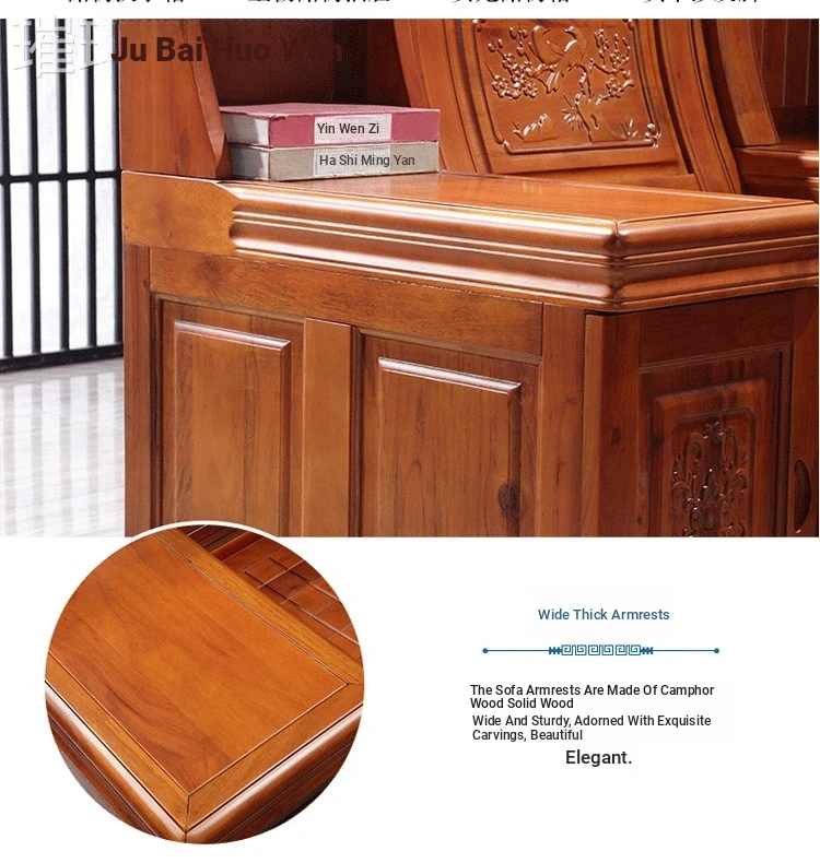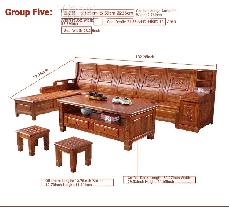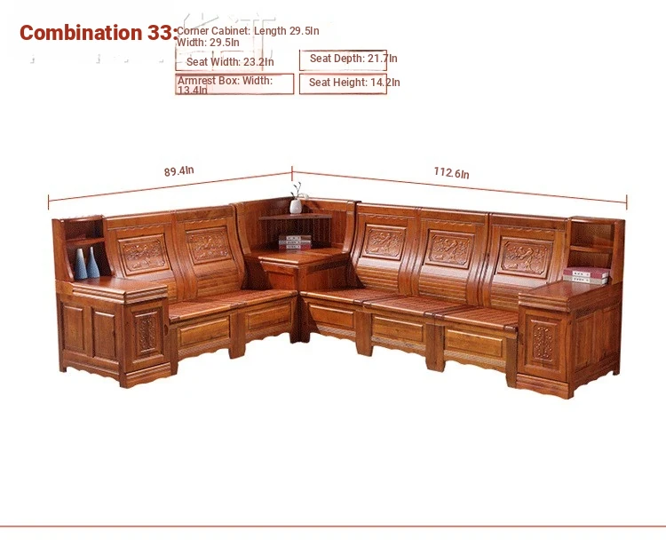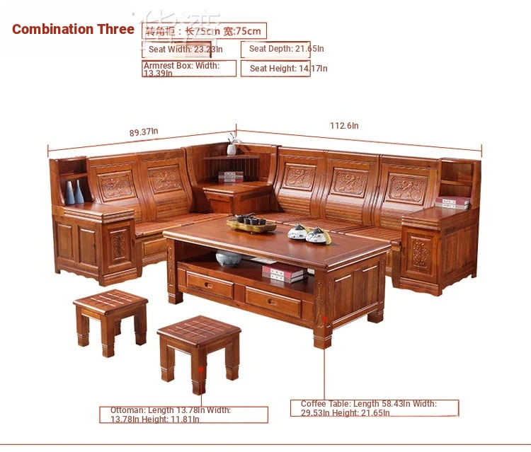 Solid Wood L-Shaped Sofa Set with Chaise Lounge - Versatile Design for Living Room or Office, Includes Coffee Table - Made from Aromatic Camphor Wood for Year-Round Comfort