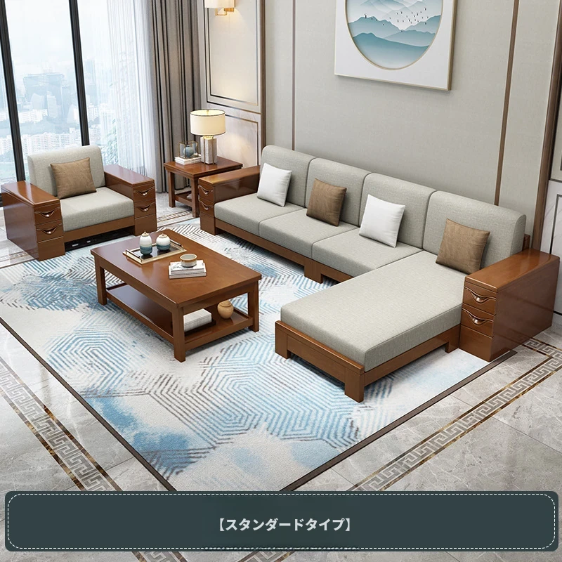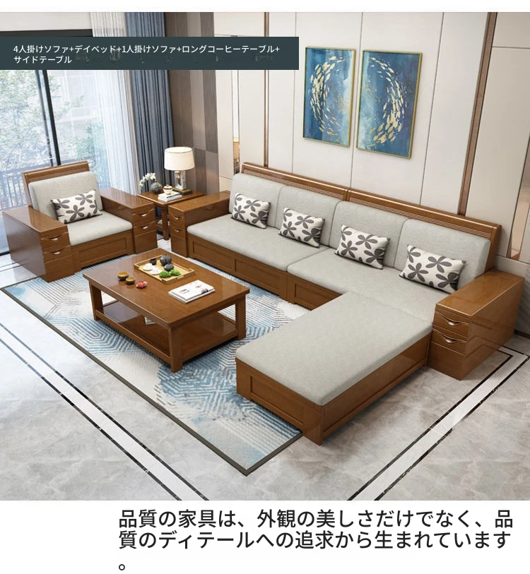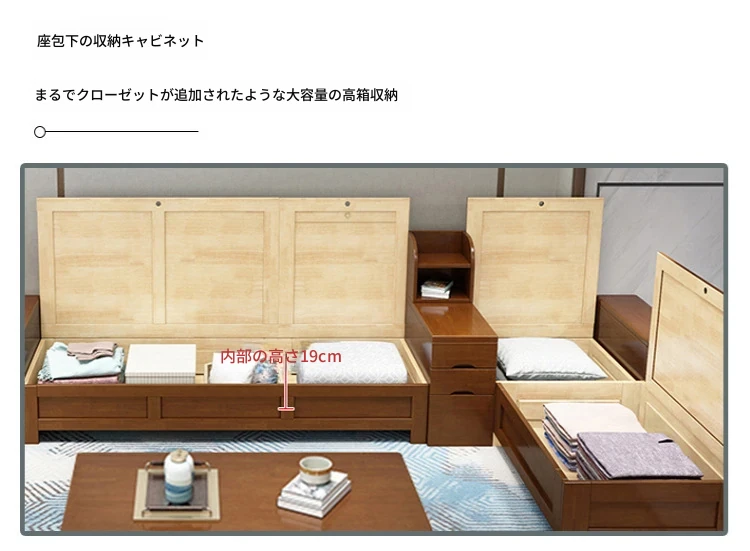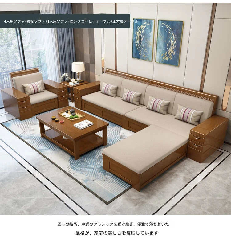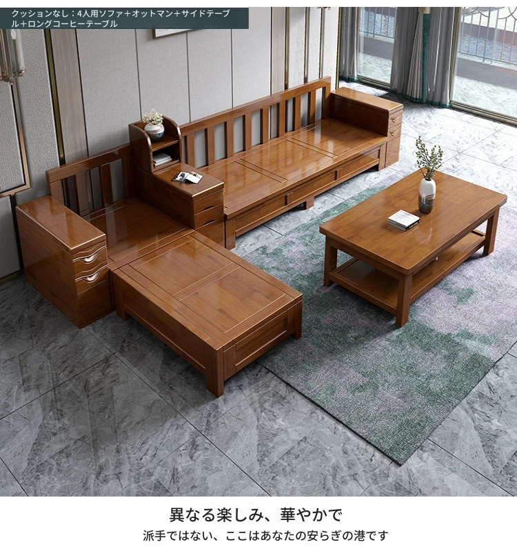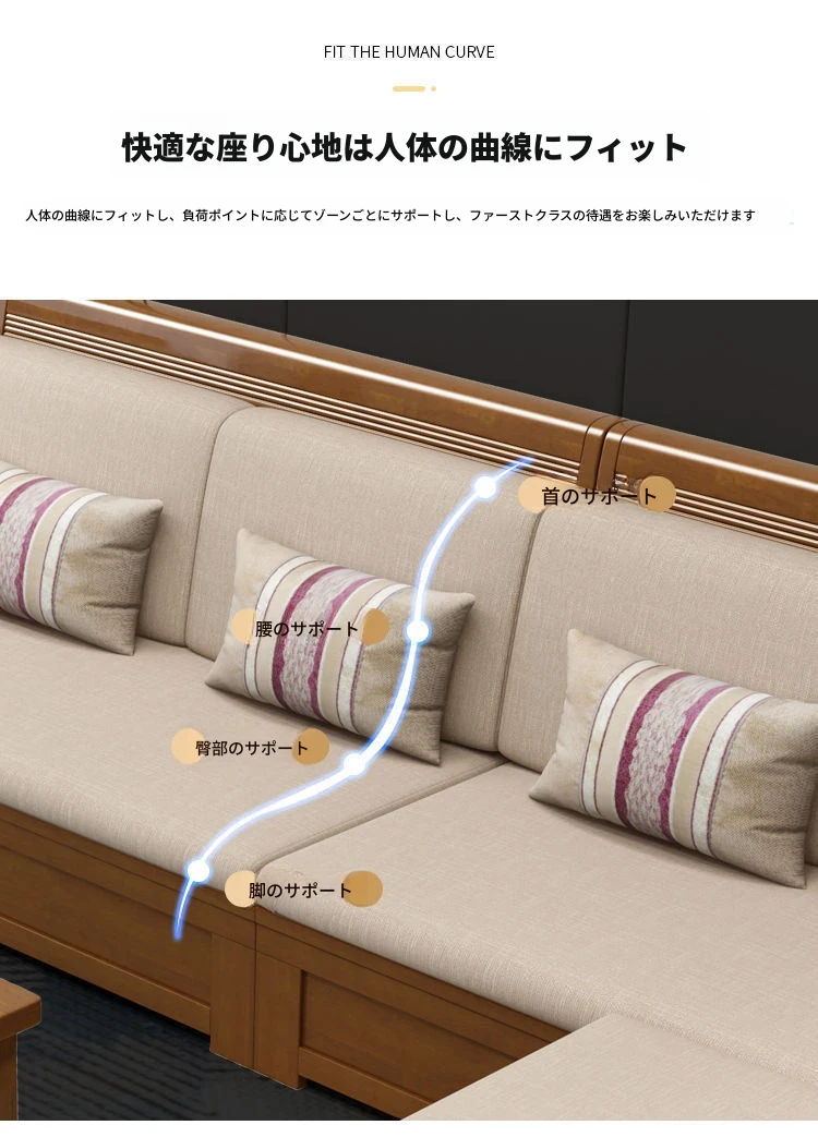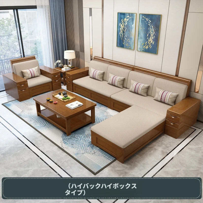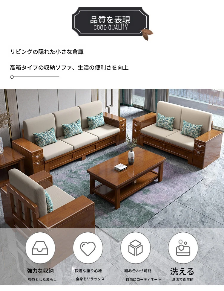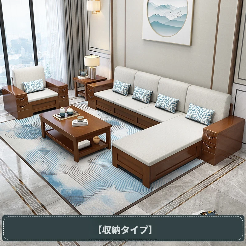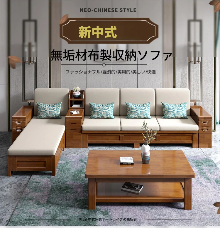 新中式デザインの実木ソファ!家庭用、リビングに最適なサイズ、冬夏兼用。ホテルや民宿にもぴったりな高箱収納付きソファで、スタイリッシュで機能的な空間を演出します!