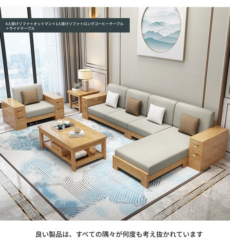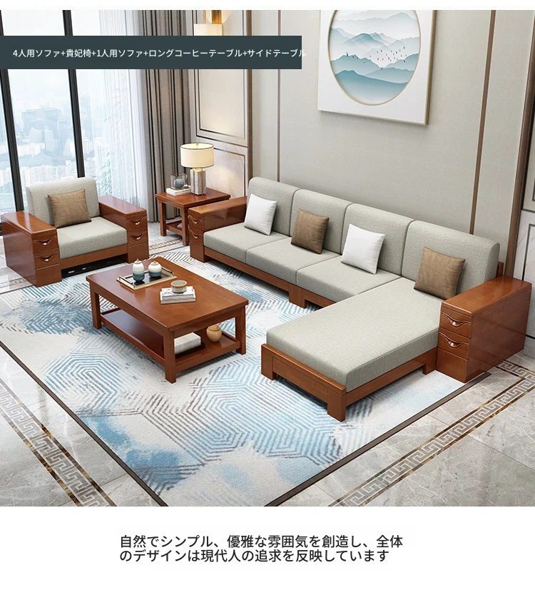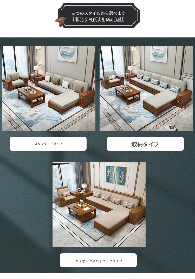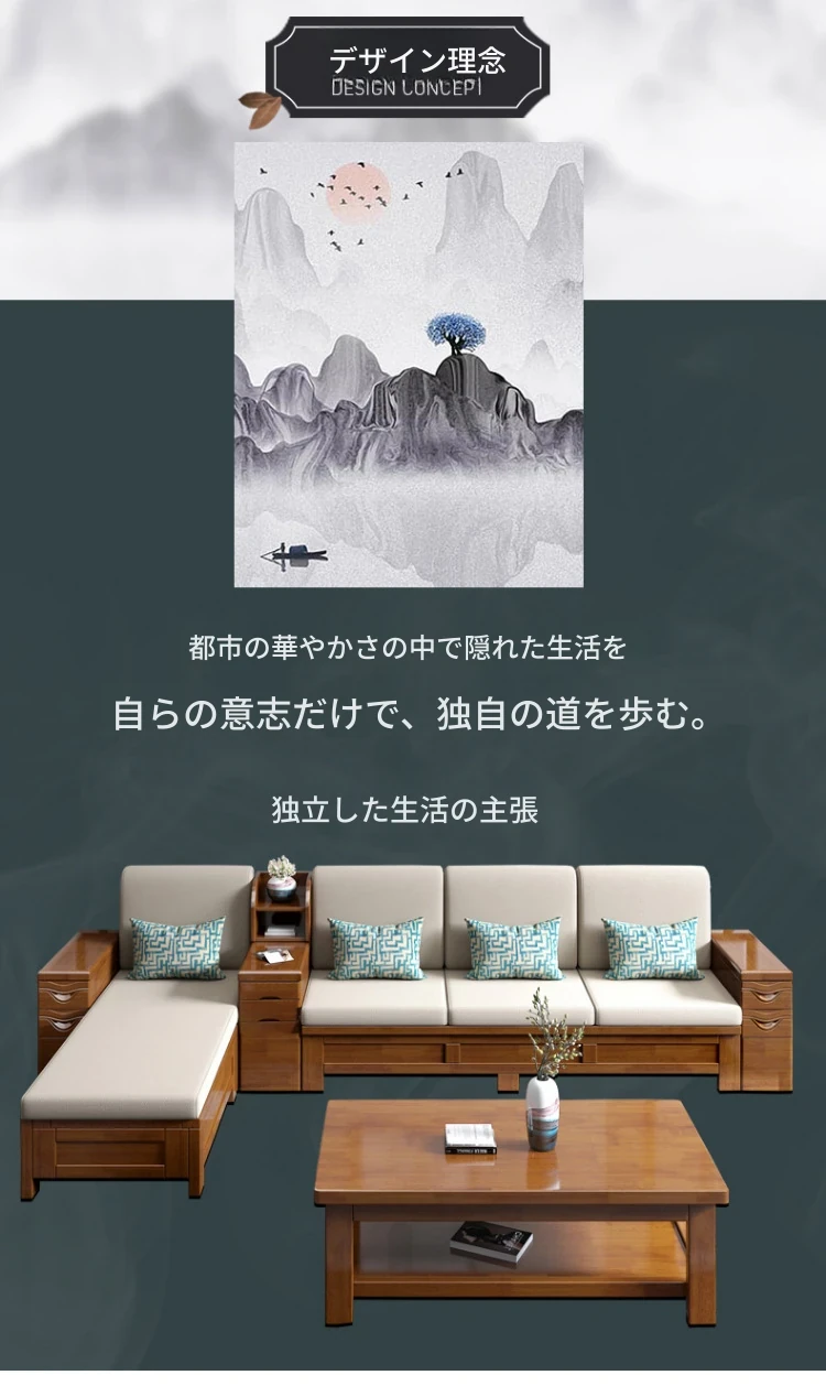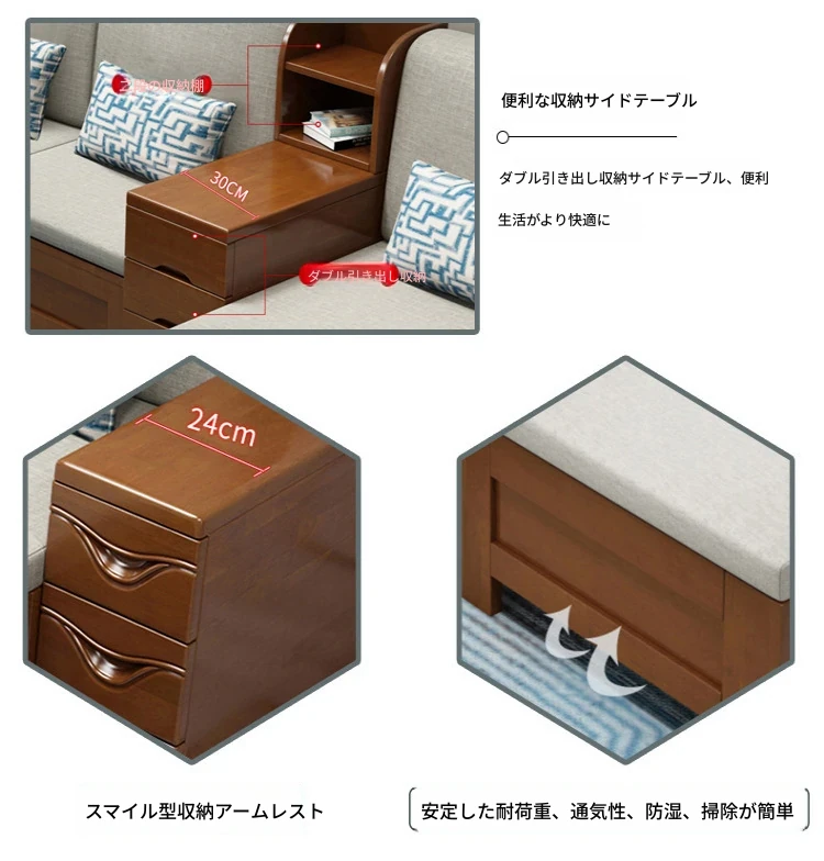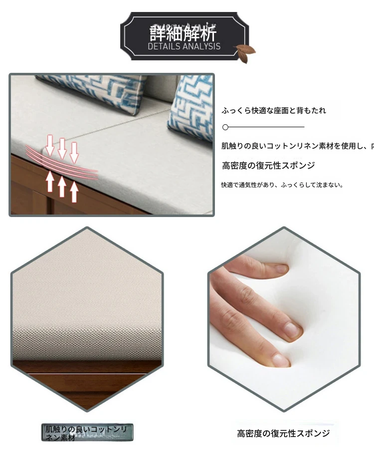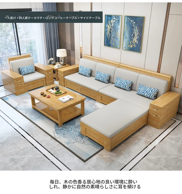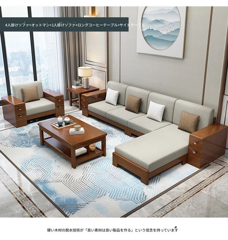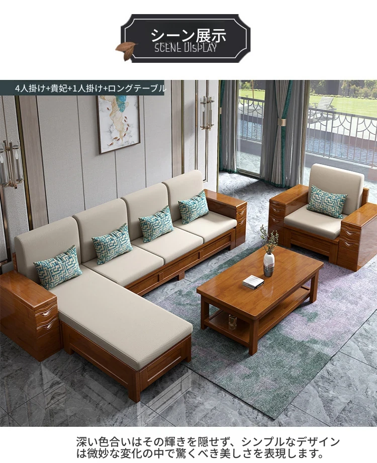新中式デザインの実木ソファ!家庭用、リビングに最適なサイズ、冬夏兼用。ホテルや民宿にもぴったりな高箱収納付きソファで、スタイリッシュで機能的な空間を演出します!