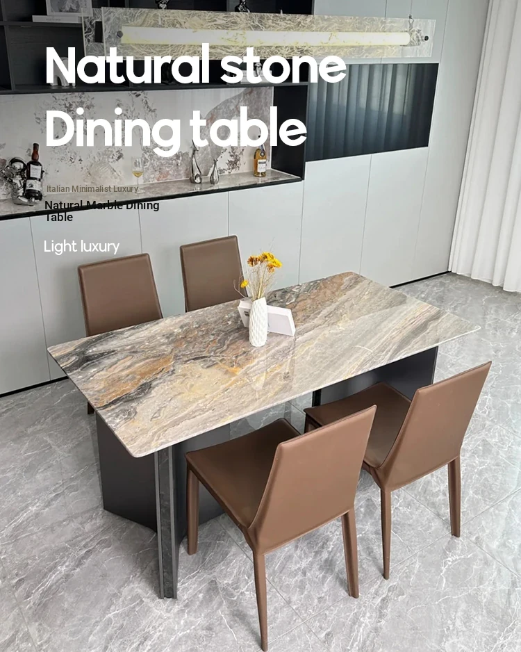 Venice Luxury Brown Marble Dining Table - Elegant Italian Design for Upscale Homes and Villas, Premium Natural Stone Square Dining Table for a Touch of Sophistication