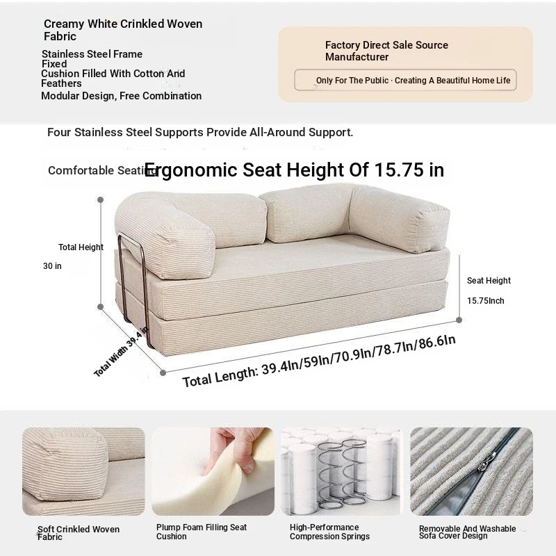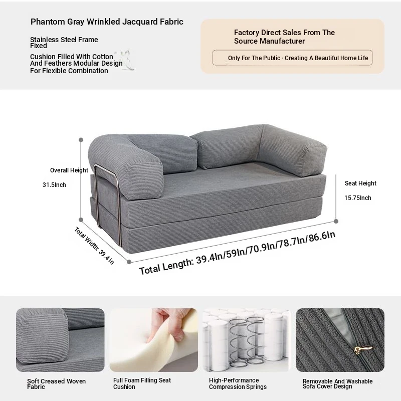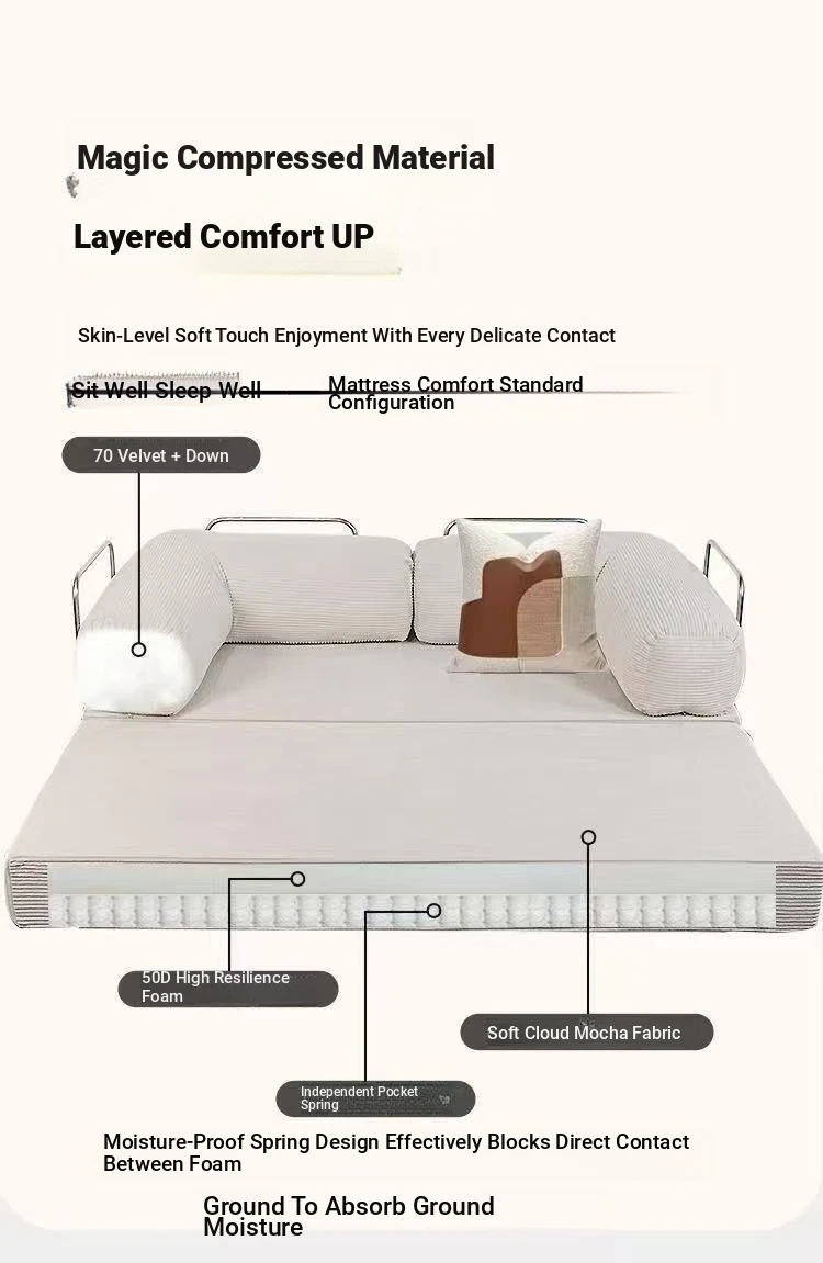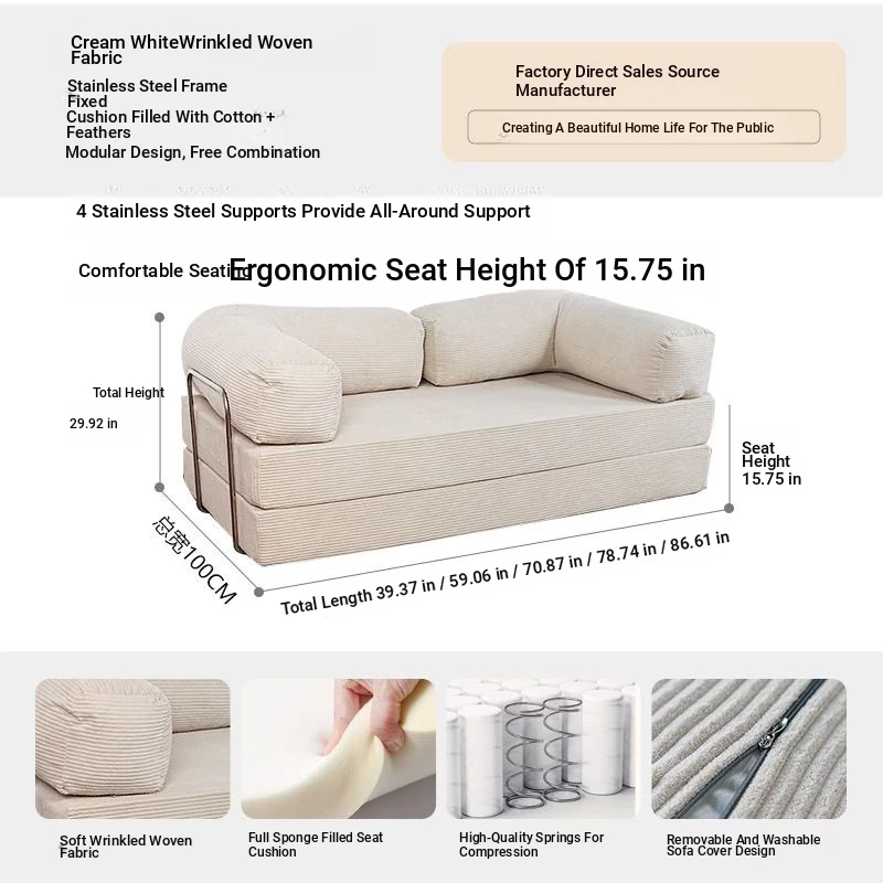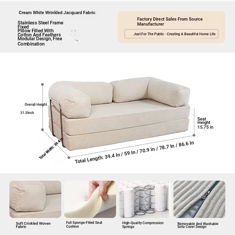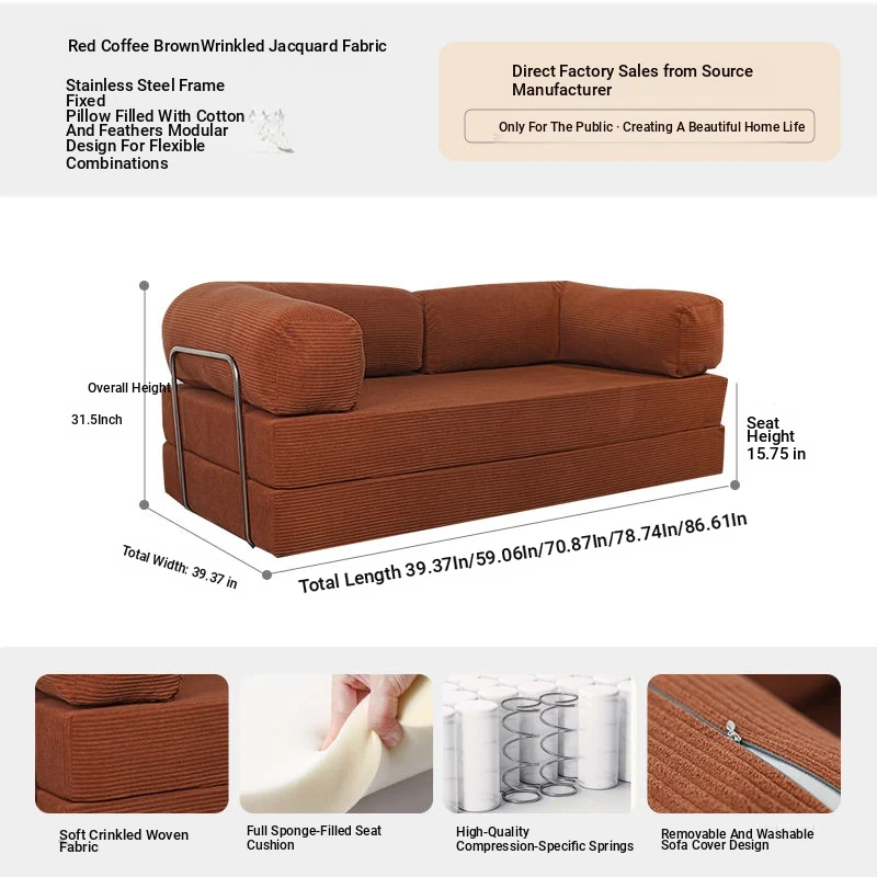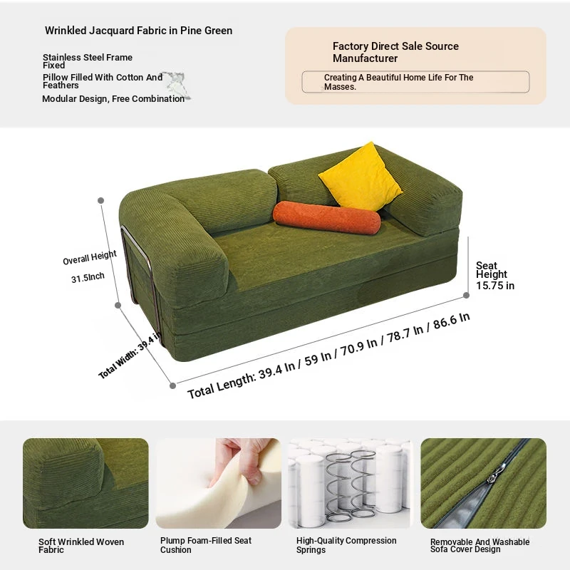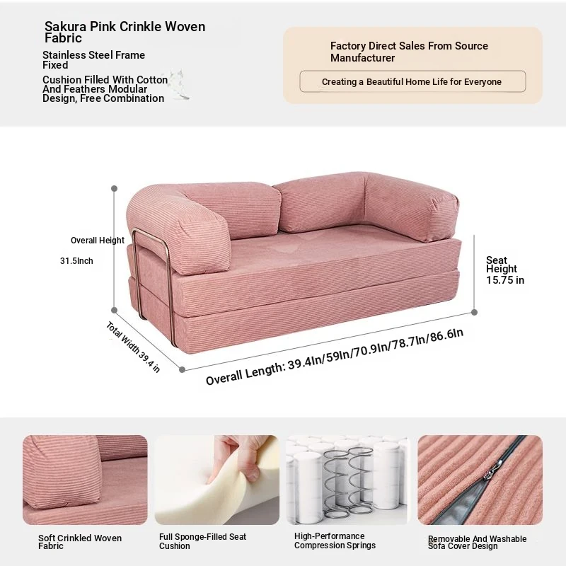 Vintage Compressed Fabric Sofa - Retro American Style Three-Seater for Small Living Rooms, Foldable and Space-Saving Design