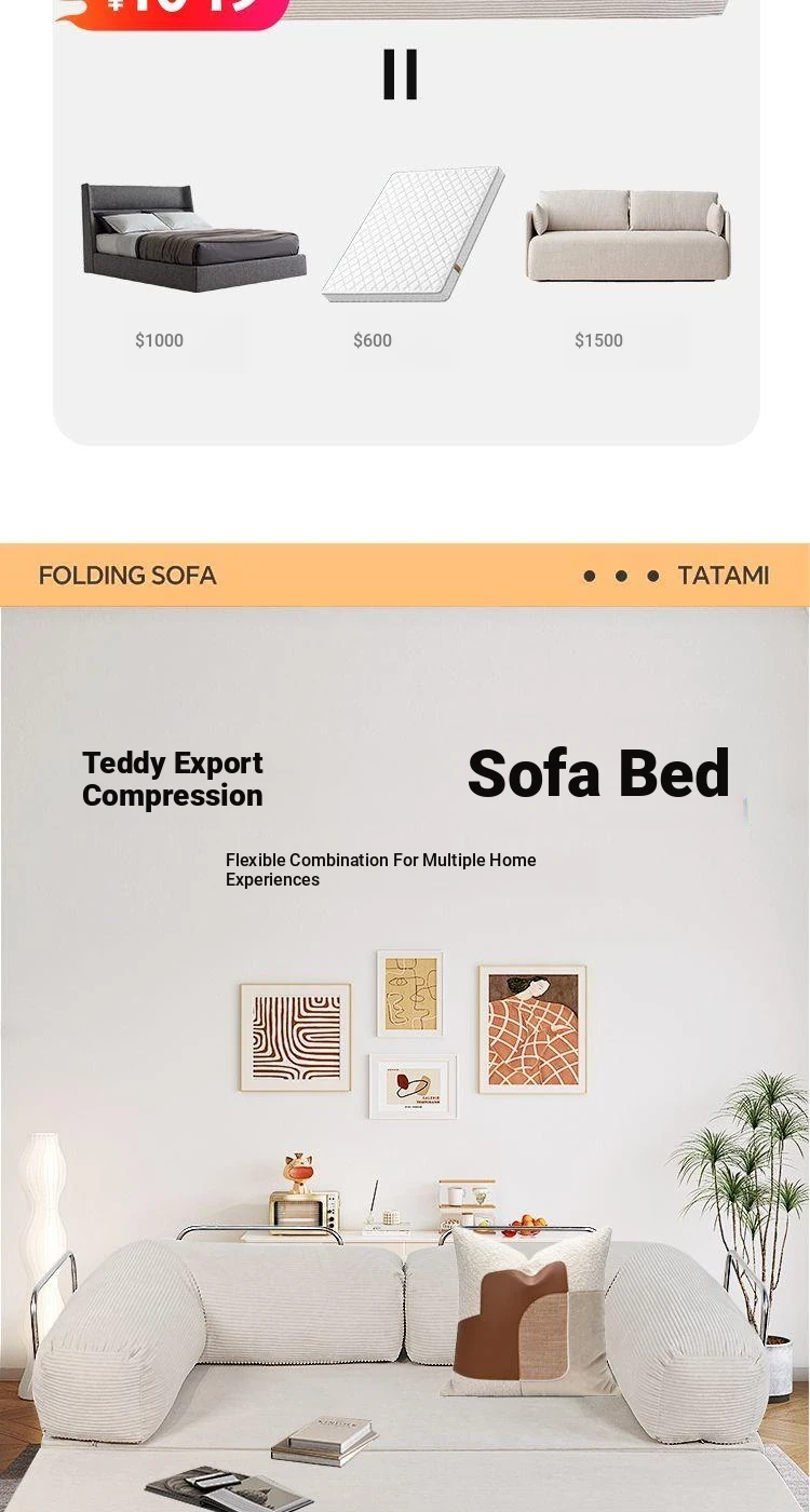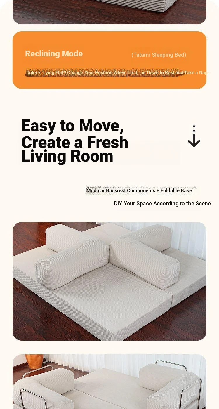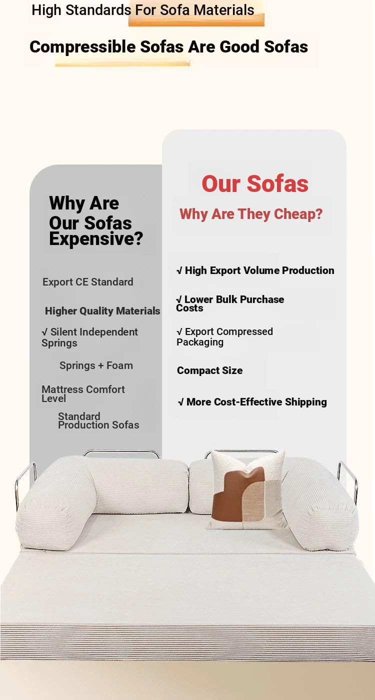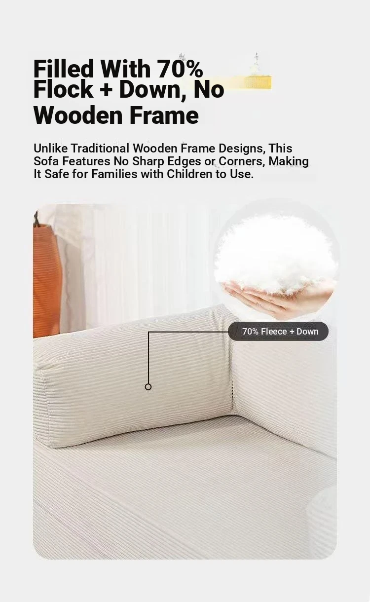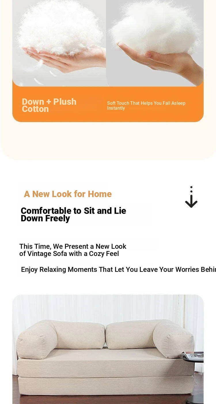 Vintage Compressed Fabric Sofa - Retro American Style Three-Seater for Small Living Rooms, Foldable and Space-Saving Design
