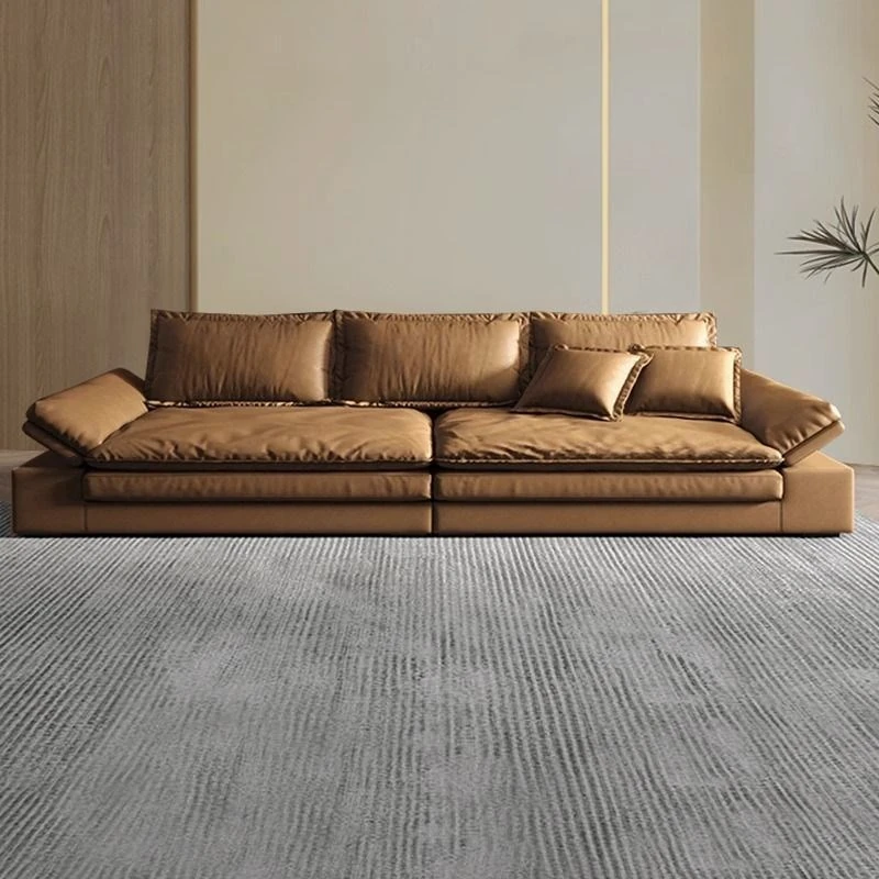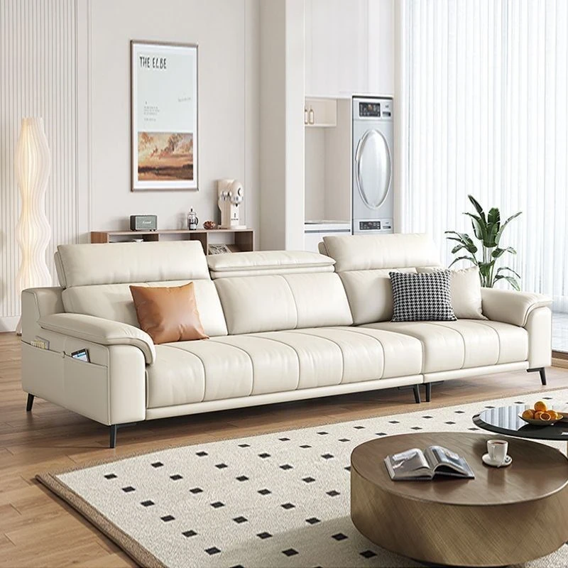 Luxury Italian Minimalist Genuine Leather Sofa for Modern Living Rooms - Perfect for Small and Mid-Sized Homes, Featuring Premium Top-Grain Cowhide for a Touch of Elegance