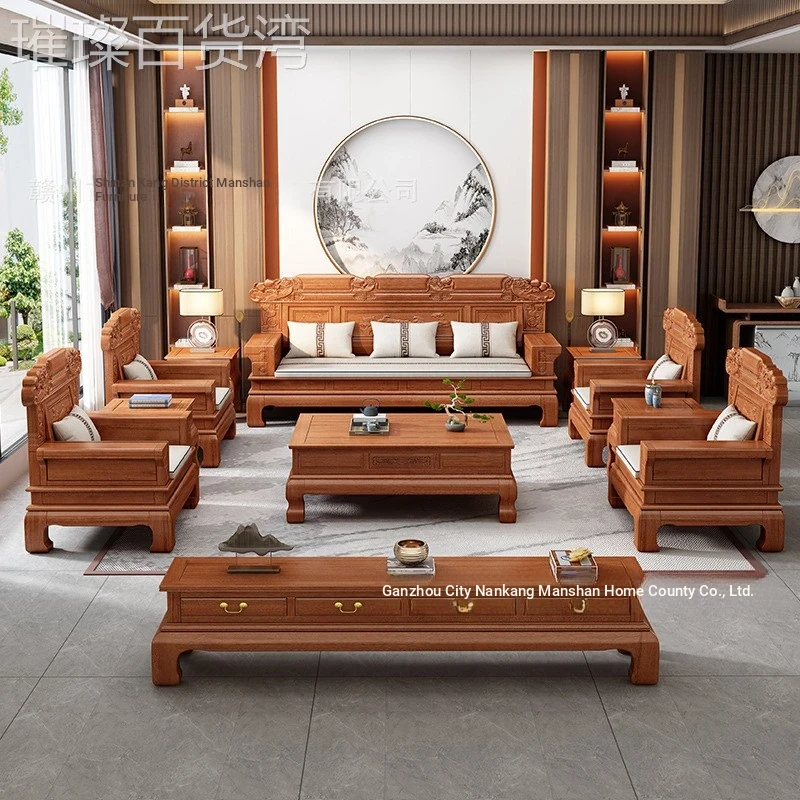 Antique-Style Ts-0608# Solid Rosewood Wood Sand, Classic Chinese Carved Design, Versatile for Winter and Summer, Perfect for Villas and Spacious Homes